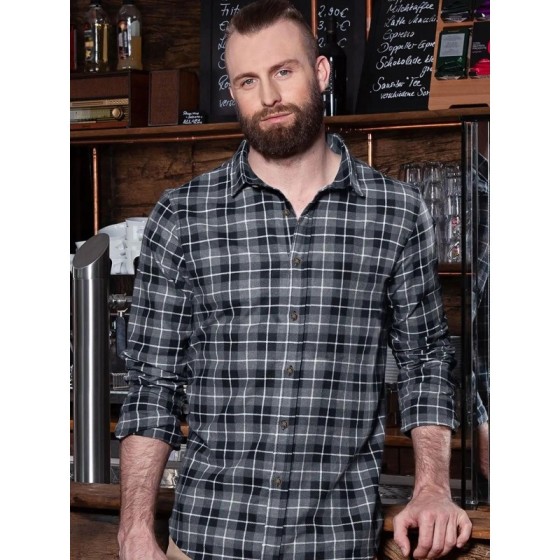 Camicia da uomo in stile urban e moderno design a quadri, perfetta combinazione di eleganza classica e trendy stile street wear, tessuto morbido sulla pelle, elevata resistenza al lavaggio contro lo sporco più ostinato, vestibilità slim fit (taglio stretto in vita), carré, colletto all´italiana, maniche lunghe, polsino sportivo arrotondato con due bottoni adiacenti per regolare la circonferenza del polsino, orlo arrotondato. Lavaggio a 60°C.
