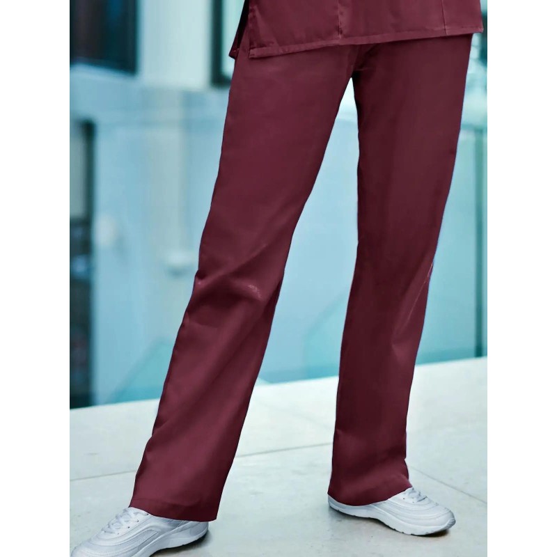 Pantaloni da lavoro unisex comodi e sostenibili, resistenti, elastico in vita, altissima lavabilità a 95°C che garantisce la purezza clinica, vestibilità comoda, altezza della vita normale, pantaloni a gamba dritta, taschini laterali, 1 taschino posteriore destro.