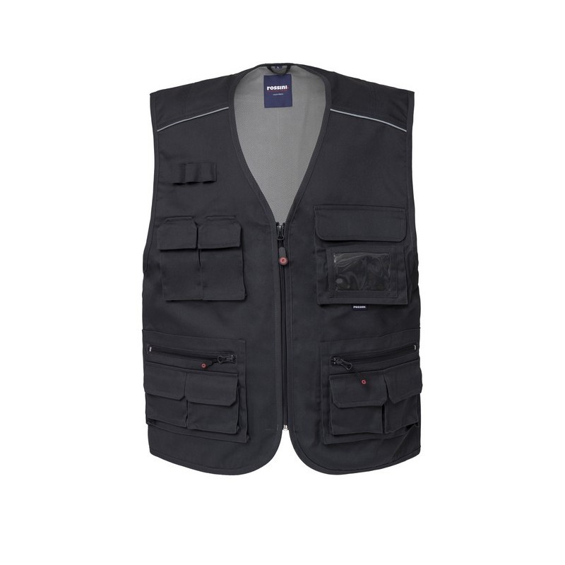 Gilet estivo con chiusura anteriore con cerniera, carré anteriore con profilo rifrangente a contrasto. Due taschini con soffietto chiusi con aletta e velcro, taschino applicato al petto con soffietto chiuso con aletta e velcro, portabadge in PVC chiuso con velcro applicato sul taschino, portapenna a tre scomparti. Due piccoli taschini con soffietto chiusi con aletta e velcro, due tasconi con soffietto chiusi con cerniera. ***TAGLIA 4XL DISPONIBILE SOLO PER I COLORI 01 BLU E 1C CAMOUFLAGE***