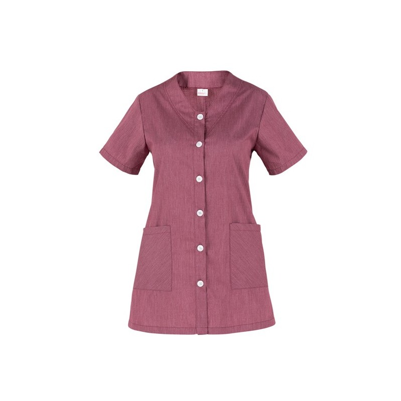 La casacca Camelia è realizzata in un leggero policotone melangiato del peso di appena 113 g / m². Presenta una vestibilità Regular Fit, labbottonatura centrale a sei bottoni opachi e due tasche dallo stile geometrico. Il tessuto è resistente alle alte temperature.