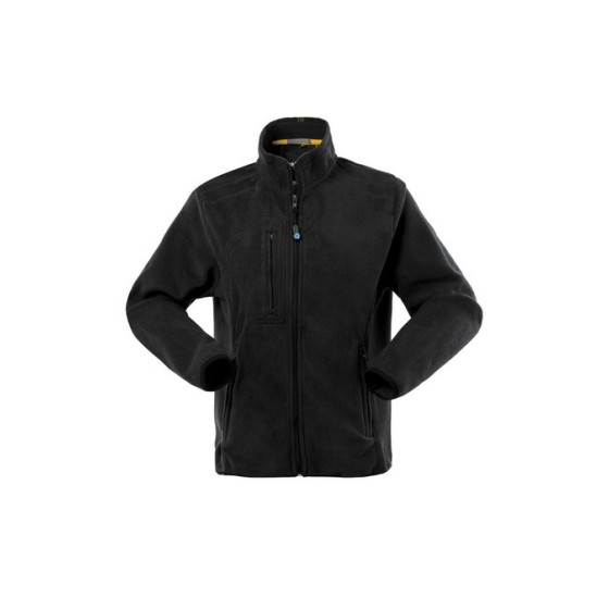 Pile da donna con collo alto con zip centrale aperta fino al fondo. Un taschino a filetto al petto destro con chiusura con zip verticale, due tasche inferiori interne chiuse con zip, polsi e girovita con bordo di colore a contrasto in tutte le varianti tranne 02-bianco e 05-nero.