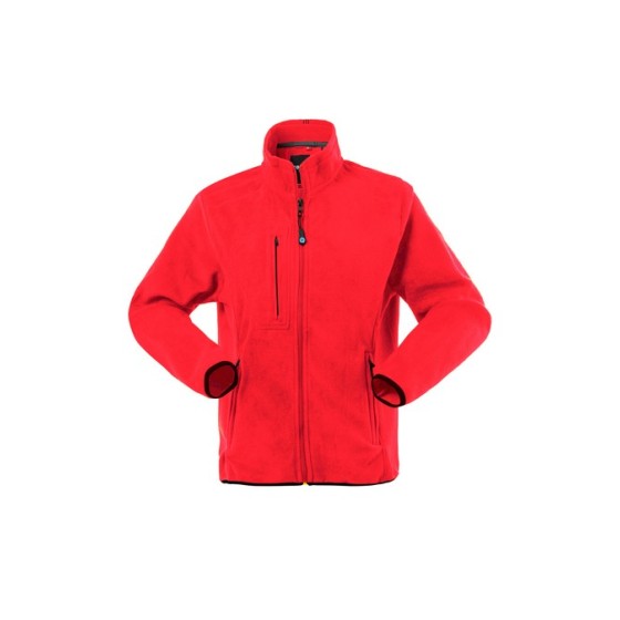 Pile da donna con collo alto con zip centrale aperta fino al fondo. Un taschino a filetto al petto destro con chiusura con zip verticale, due tasche inferiori interne chiuse con zip, polsi e girovita con bordo di colore a contrasto in tutte le varianti tranne 02-bianco e 05-nero.