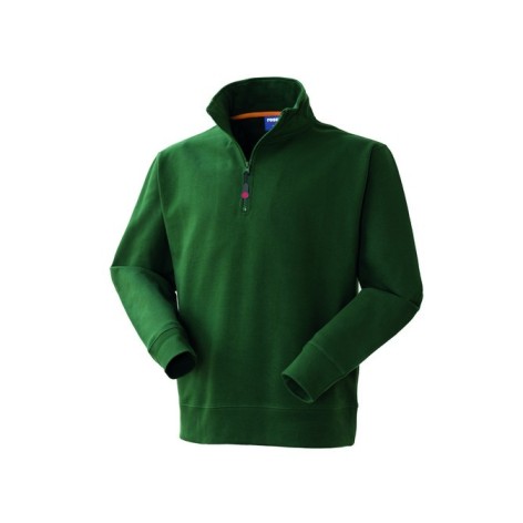Felpa con collo alto chiuso con cerniera (in metallo solo per il colore bianco), parasudore interno al collo di colore a contrasto arancio (in tinta per il colore bianco), polsi e fascia girovita in maglia elastica.