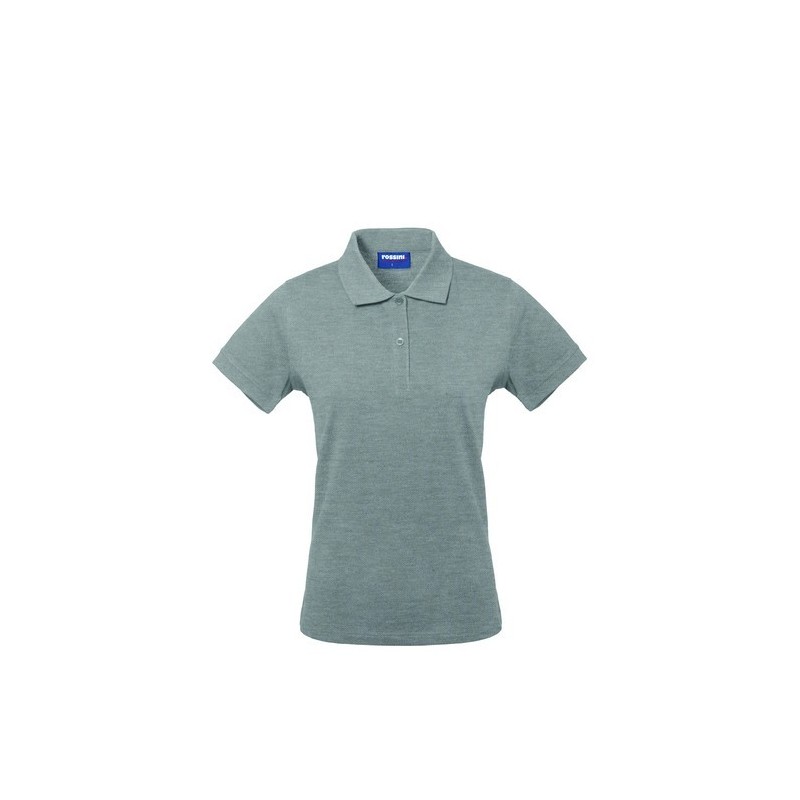 Polo mezza manica da donna con fascia parasudore nella parte posteriore del collo. Collo chiuso con due bottoni, giromanica a costina e spacchetti laterali al fondo.