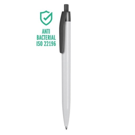 penna a sfera meccanismo a scatto corpo in plastica solid antibatterica refill con sfera al tungsteno inchiostro nero tecnica di stampa consigliata: serigrafica - tampografica - UV