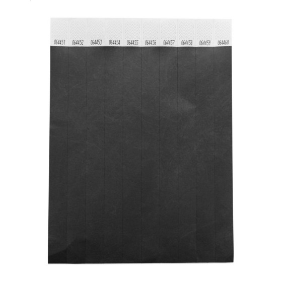Fascetta in tyvek da 19 mm di larghezza (in fogli da 10 pezzi) con chiusura di sicurezza adesiva e numerazione unica.