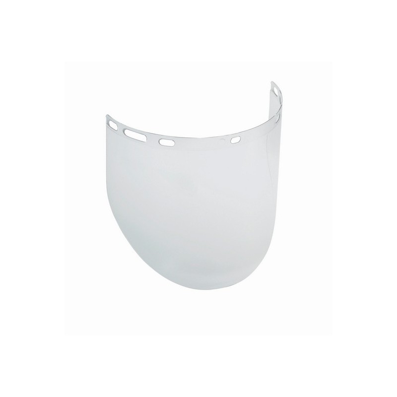 Per semicalotta R710 Visiera neutra in policarbonato 395x240x2 mm, schermo iniettato, protezione contro radiazione UV, gocce e spruzzi, impatti meccanici, metalli fusi e solidi incandescenti, arco elettrico da corto circuito, graffi superficiali (marcatura K), certificata con i simboli per il campo di utilizzo 8 e 9 della EN166 per protezione arco elettrico e proiezioni di metallo fuso, resistente ad impatti e a temperature estreme. In abbinamento con R710.