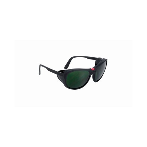 Lenti verdi iR5 in policarbonato con trattamento antigraffio intercambiali, occhiale bilente con protezioni laterali areate basculanti, vite centrale per una veloce sostituzione delle lenti. Montatura in nylon e policarbonato, disponibilità lenti intercambiabili, peso 38 g, classe ottica 1, classe dimpatto FT.