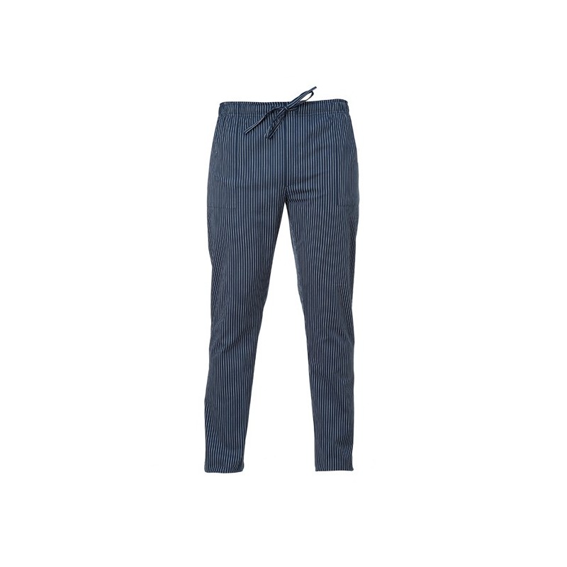 11P08P20 Pantalone dalla vestibilità regular e taglio trendy, realizzato in elegante tessuto gessato 70% cotone e 30% poliestere dalla mano morbida e resistente al candeggio. Fascione con coulisse, due tasche sui fianchi e piccola tasca posteriore.