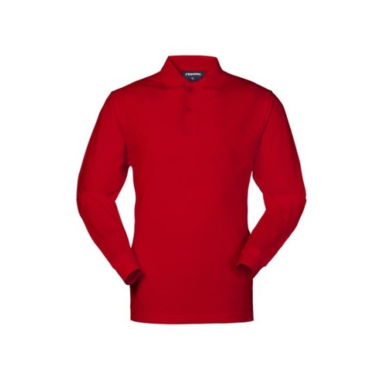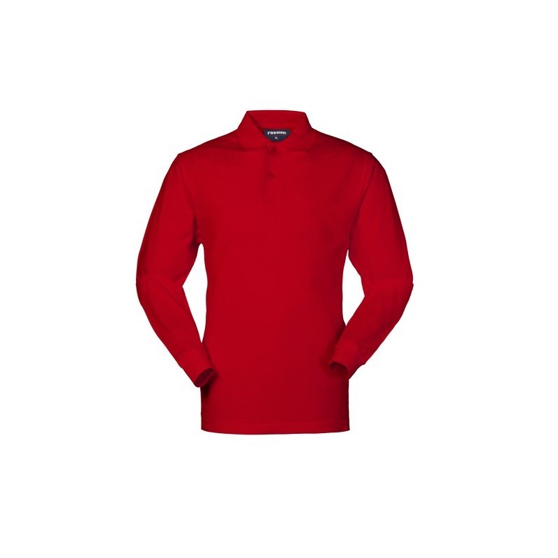 Polo manica lunga con polsino in maglia, rinforzo sulla parte posteriore del collo con fascia parasudore interna, collo chiuso con due bottoni, ribattitura su spalle e giromanica, spacchetti laterali al fondo.